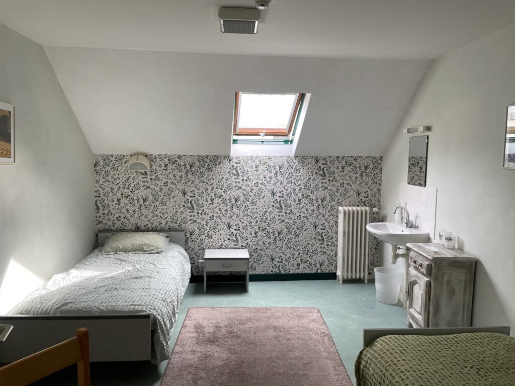 Our 12 student rooms can be used in single or multiple occupancy. Each bed has 2 pillows, and a duvet. Each room has a washbasin with hot and cold running water, a wardrobe, small table with chair, nightstand and bedside light. The showers and WCs are a few steps along the hall. Shower rooms and bedrooms are single sex. Please ask if you are a married couple wanting a double room.